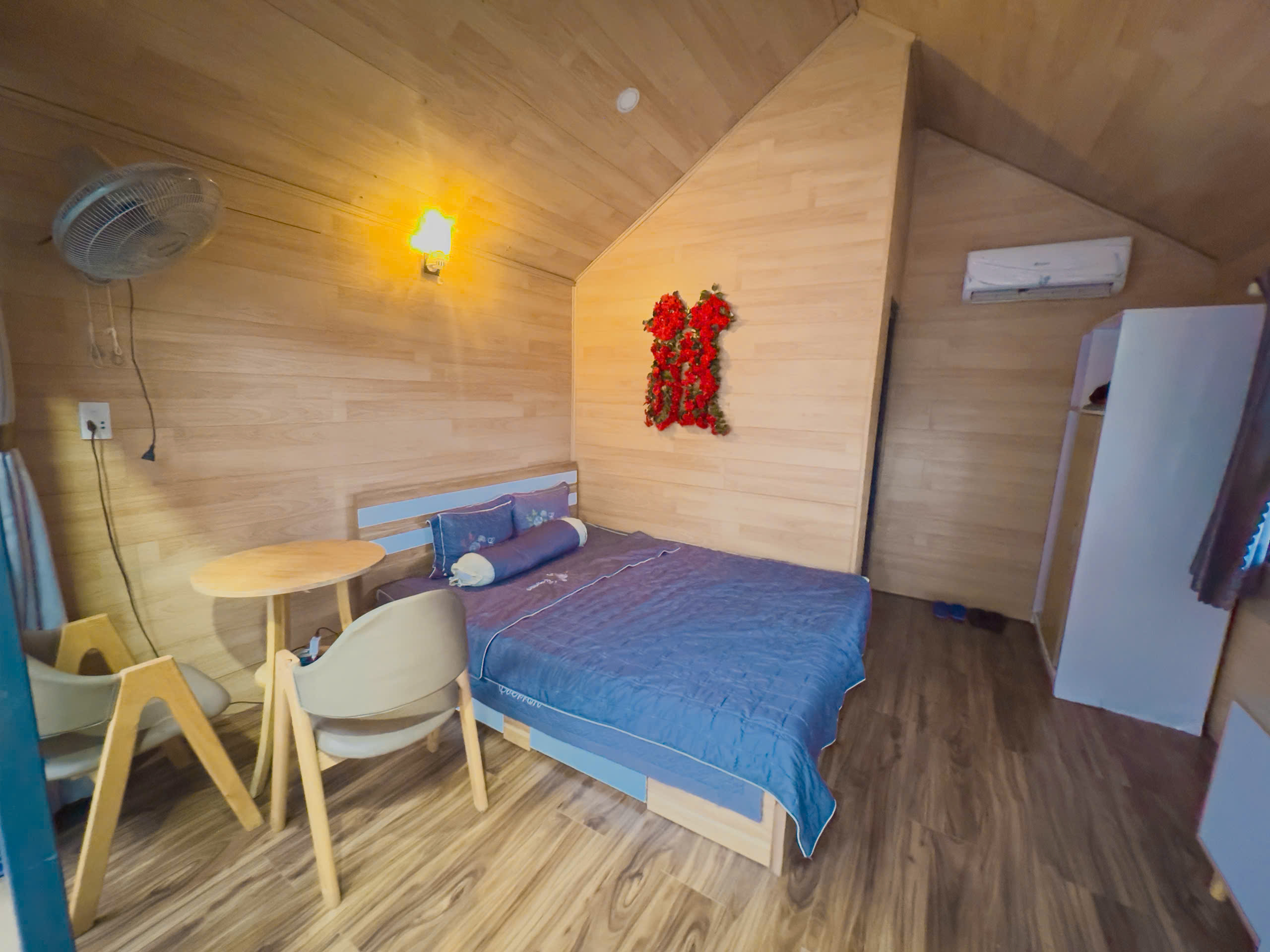 Phòng nghỉ tại homestay được trang bị đầy đủ các vật dụng cần thiết để mang đến cảm giác thoải mái nhất cho khách hàng như giường chất lượng, điều hòa, bàn ghế và khu vực vệ sinh riêng sạch sẽ.